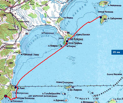 Мое основное каякерское мероприятие сезона. Планировалось, что август приютит его в своих начальных числах, но как-то и дела не отпускали, и погода особо не располагала. Когда же календарь начал настойчиво сигналить о скорой кончине лета, понял, что пора уже выуживать себя из городской суматохи и реализовывать задуманное. Тем более, по прогнозам через несколько дней с небес хлынет вода, а хотелось все-таки успеть показать своему телу солнечные лучи. Итак, начало морской части маршрута во Владивостоке, завершение в Посьете с бонусным заходом в приграничные воды с Северной Кореей. Соответственно, путь пролегал через все участки морского заповедника, поэтому предварительно была получена в администрации разрешительная грамота (благодарю директора морского заповедника Малютина Андрея Николаевича за содействие в получении разрешения). |