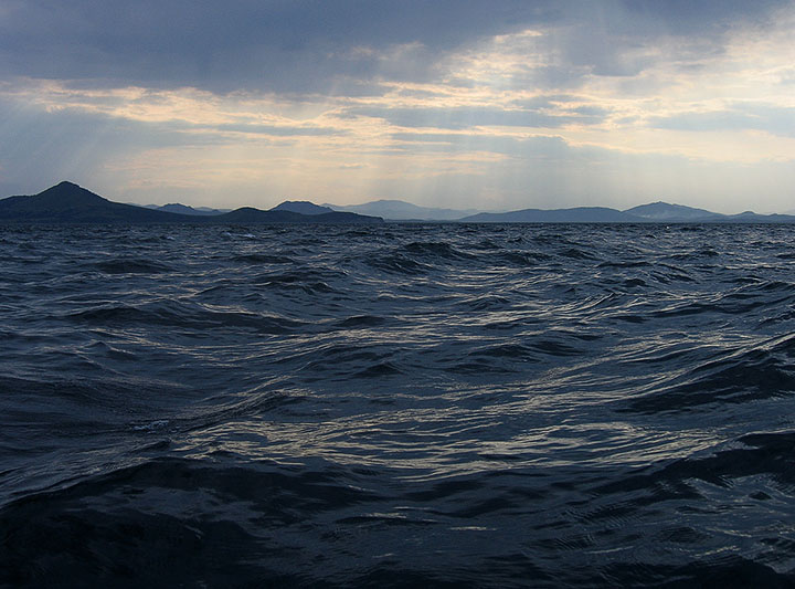 К вечеру на море стало совсем как-то неуютно. В этих условиях и пришлось плескаться порядка 10 километров, двигаясь