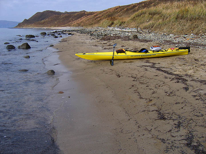 остановка на Песчаном перед завершающим броском через залив. Идет пятый час, неспокойное море, сил уже потрачено немало,