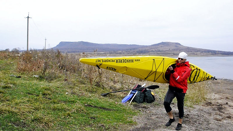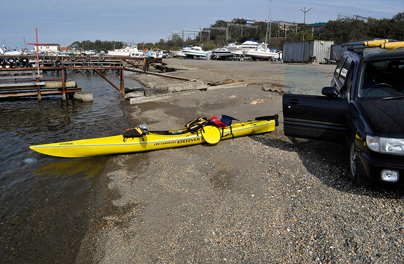 Завершил свой "бурлацкий" этап, добравшись до места перехода через перешеек полуострова. |