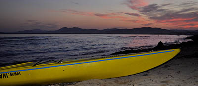Отыскали себе кусочек свободного песчаного пляжа, откуда я и предпринимал морские вылазки к ближайшим мысам и островам.