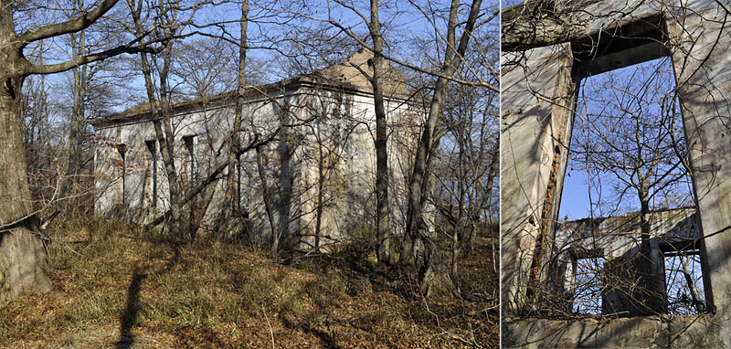 Неподалеку от моей остановки, буквально в десяти шагах от воды красуется артефакт – массивные стены разрушенного временем одинокого строения, уже давно поглощенного лесом. Вероятно, летний интерьер этого здания с зелеными деревьями внутри и разбросанными повсюду цветущими кустарниковыми сгустками выглядит особо эффектно. |