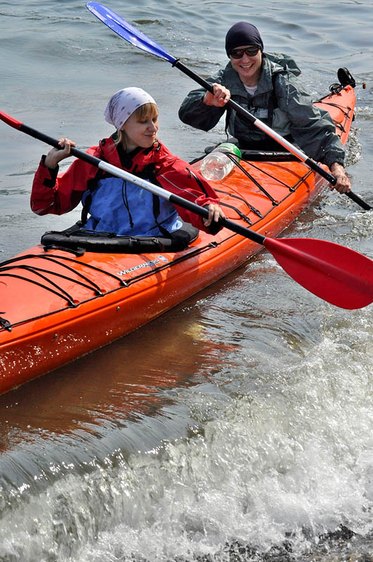 Погода нынче пошла капризная и совпадение нашего каякерского порыва с великолепными атмосферными условиями (ну, по крайней мере, пока мы были на воде) можно посчитать за удачу. Итак, субботний день, нагрянувшее лето и морской отряд Константиновых с сопутствующим багажом. Поехали. |