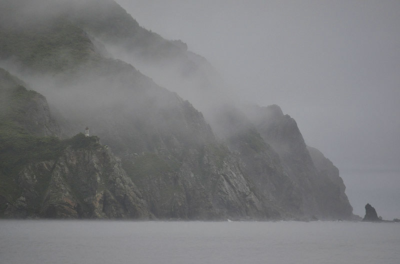 Все-таки я выбираюсь за впечатлениями, а не за формальным прохождением маршрута. Мне важно УВИДЕТЬ, но в сложившихся погодных условиях можно было только рассчитывать на спортивное ориентирование в тумане и противостояние со стихией, по крайней мере, стартовать в таких условиях мне совсем не хотелось, да и не стоило ради этого покидать Владивосток, где с тем же успехом можно было бы побродить по акватории в аналогичной обстановке. Так что я замер в ожидании погодных перемен и дождался их только по истечении четвертых суток. |