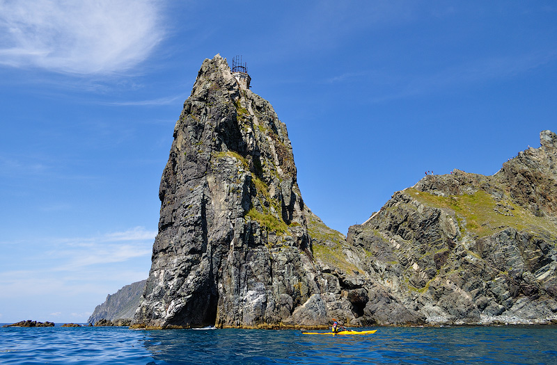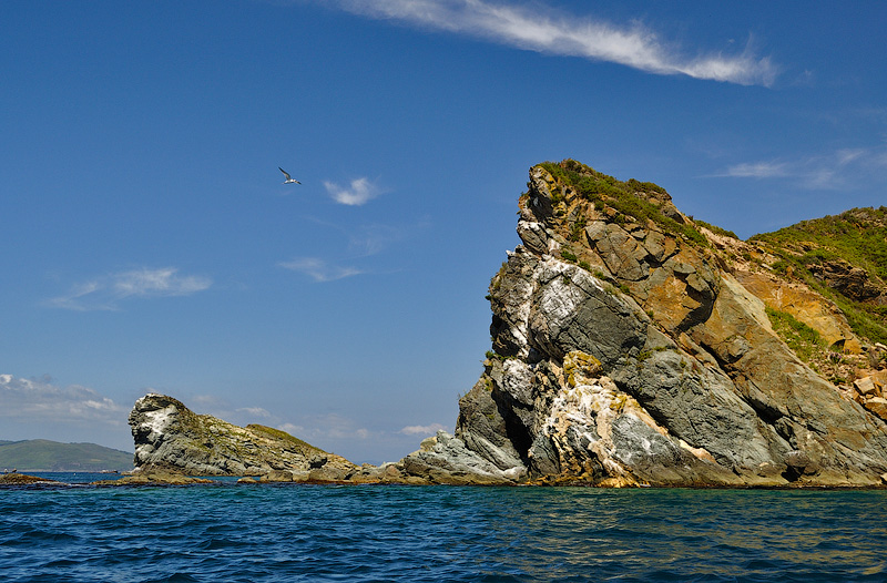Оценив западную сторону, пересекаем глубоко вдающуюся внутрь острова бухту Наездник и оказываемся на самой южной точке Аскольда – мысе Елагина. |