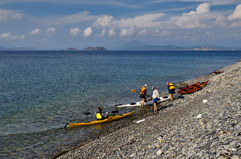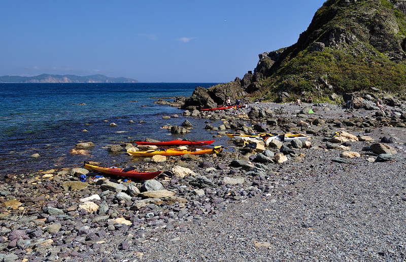 Далее следует еще один гребной отрезок, и мы высаживаемся на острове Аскольд, а именно на мысе Ступенчатый, где и обустраиваемся на ночевку. |
