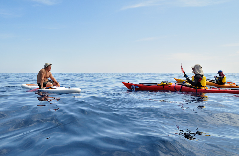 Неожиданная встреча с собратом по веслу, так же идущего вокруг острова, только в противоположном направлении.