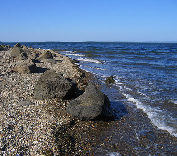 на совсем не песчаный берег мыса Песчаного, абсолютно