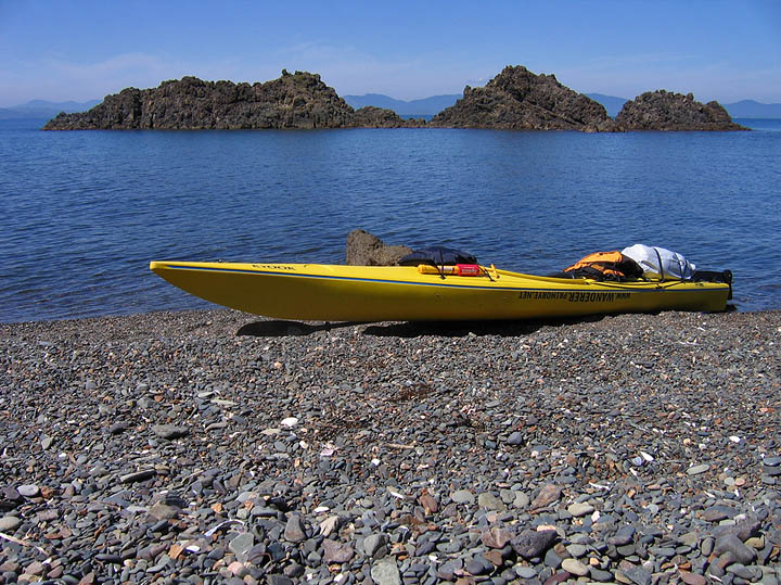 День выхода. С утра продолжил прерванные сном сборы. Что-то еще пришлось доводить до ума. Над чем-то крепко призадумался: брать – не брать. Тут еще ко всему нерешенный вопрос с заброской. Все мои коллеги по морскому каякингу с машинами, приспособленными для перевозки лодок, покинули город по случаю выходных. Словом, день уже плавно перетекал в вечер, когда я только оказался на берегу в окружении провожающих и груды вещей. Спешно загрузился, выдохнул, оттолкнулся от берега и … не пойдя ко дну, вопреки раздающимся предположениям, двинулся к проливу Старка. |