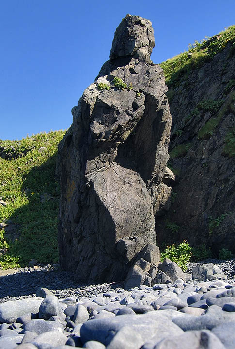 Добравшись до мыса Льва, зашел на кордон морского заповедника отметиться, а потом направился в бухту Горшкова. В красном закатном свете кекуры-камни-скалы производили потрясающее впечатление, даже, несмотря на морское волнение... или нет - это скорее усиливало мое восприятие. Правда, нерп всех смыло с мест лежки, а может у них был обеденный перерыв. Только редкие особи, высунув головы из воды, с любопытством разглядывали меня, опасливо держась на расстоянии. |