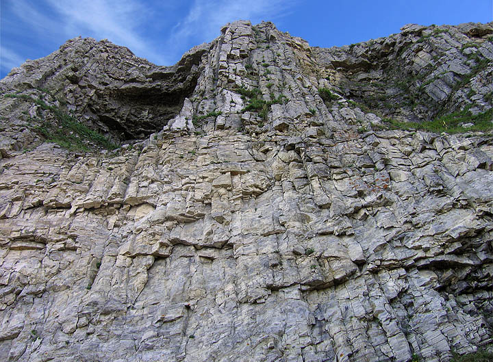 Готическая стена угрожающе нависает над узкой береговой полосой. |