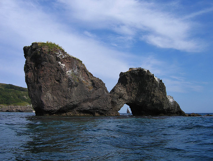 Удаляюсь и еще взгляд назад - вот оно, будущее место каякерского паломничества. Хотя, с большей вероятностью, здесь будут тусоваться пляжные каякеры, ведь в бухте напротив стоит база отдыха. |