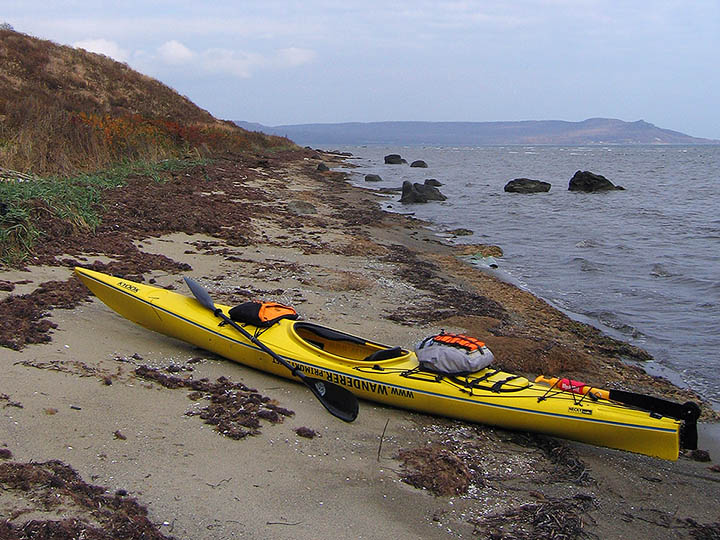 остановка на Песчаном перед завершающим броском через залив. Идет пятый час, неспокойное море, сил уже потрачено немало,