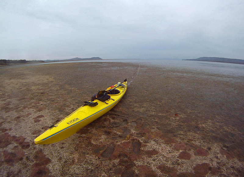 Приплыли :). Я предполагал, что бухта Песчаная мелкая, но вот к этому я не был готов, ну, т.е. болотников у меня с собой не оказалось. |