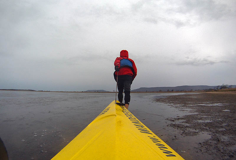 Все готово для продолжения маршрута, осталось только впрячься. При таком глобальном мелководье ничего не оставалось делать, как тащить лодку к месту перехода волоком. |