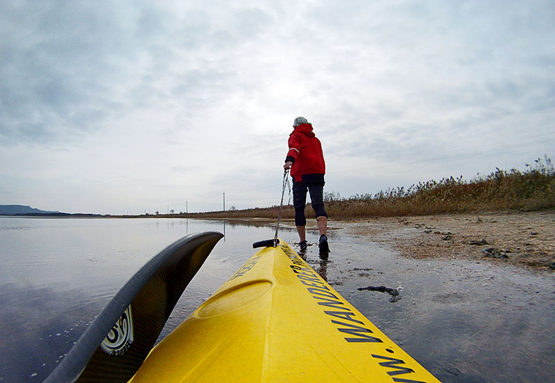 Придумал себе на излете сезона еще одно комбинированное приключение – пешеходно-каякерский обход полуострова Песчаный. С водной частью все понятно, а вот сухопутная заключалась в переходе узкого перешейка в основании полуострова с каяком и скарбом на плечах. Это, конечно, не Суворовский переход через Альпы, но все же. Так вот, учитывая это, и то, что данная местность для меня была не известна, первооткрывательский дух этой вылазке был в полной мере обеспечен.