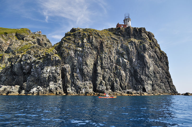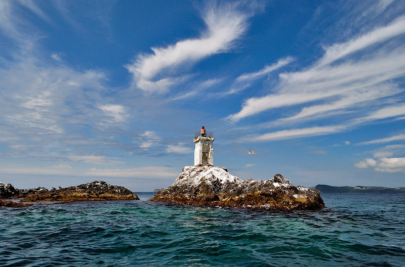 Оценив западную сторону, пересекаем глубоко вдающуюся внутрь острова бухту Наездник и оказываемся на самой южной точке Аскольда – мысе Елагина. |